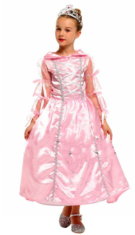 Cette déguisement est composée d’une robe de princesse rose et d’une diadème .