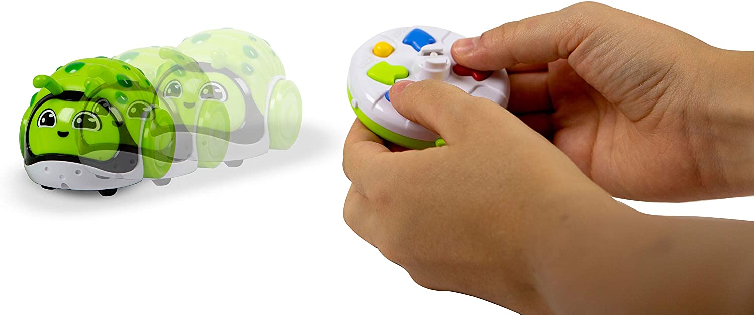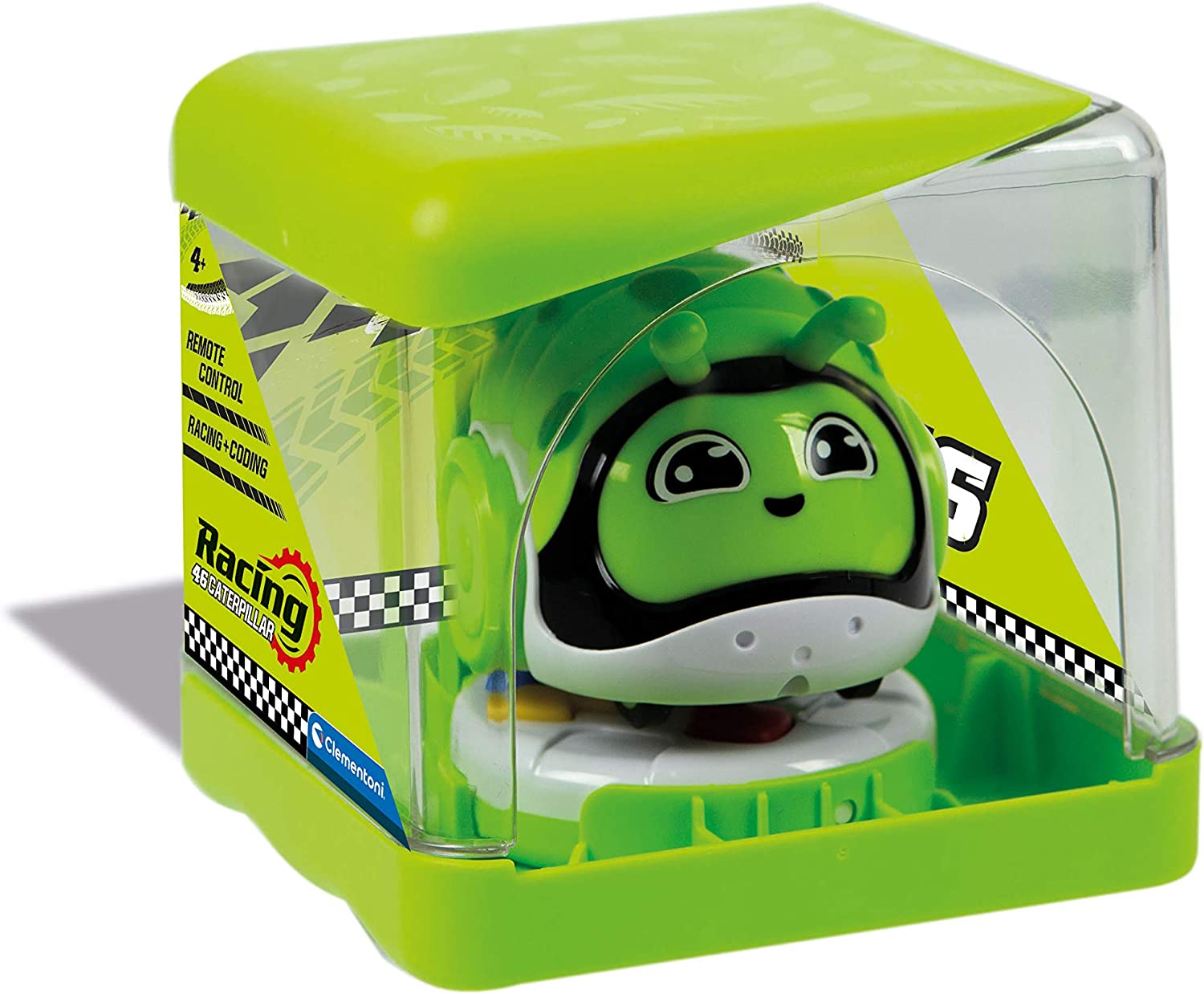 - Les enfants pourront déplacer le robot en forme de chenille avec la télécommande en utilisant 2 modes : Codage, pour programmer 10 mouvements en séquence, et Course pour piloter en temps réel.