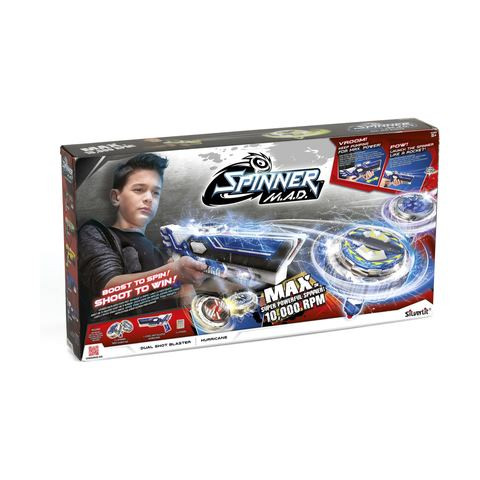 Relevez le défi dans un duel spinner ! L’ensemble comprend un double lanceur et 2 toupies. Pour commencer à jouer, placez la toupie dans le lanceur, puis utilisez l’amplificateur de puissance situé dans le lanceur